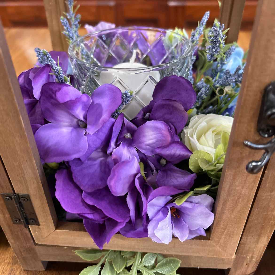 Decorative Lantern w/Candle & Flowers