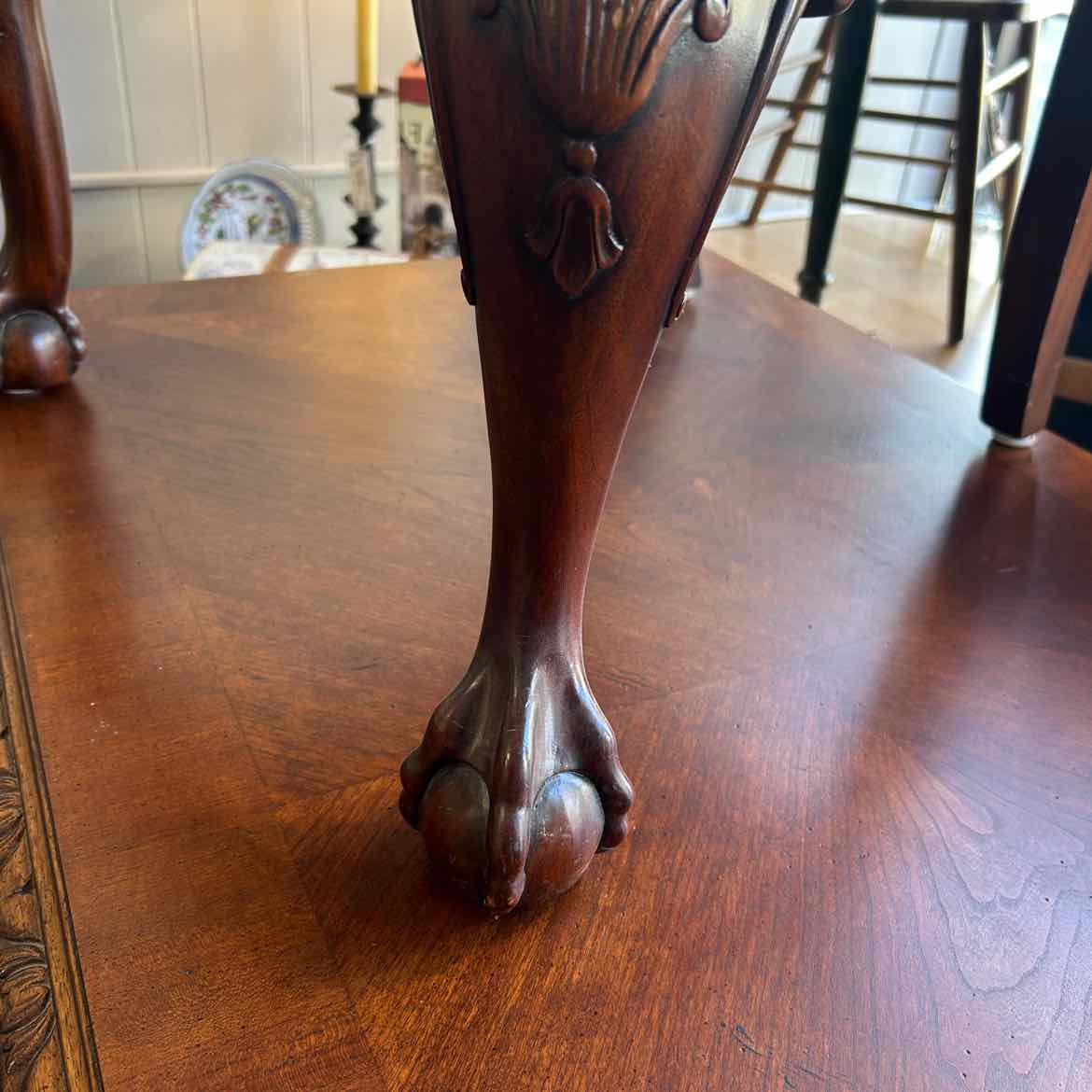 Wood Chair w/Claw Feet & Blue/Tan Upholstered Seat